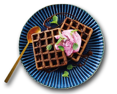 وافل هش وساخن بنكهة غنية وتغطية لذيذة من اختيارك.